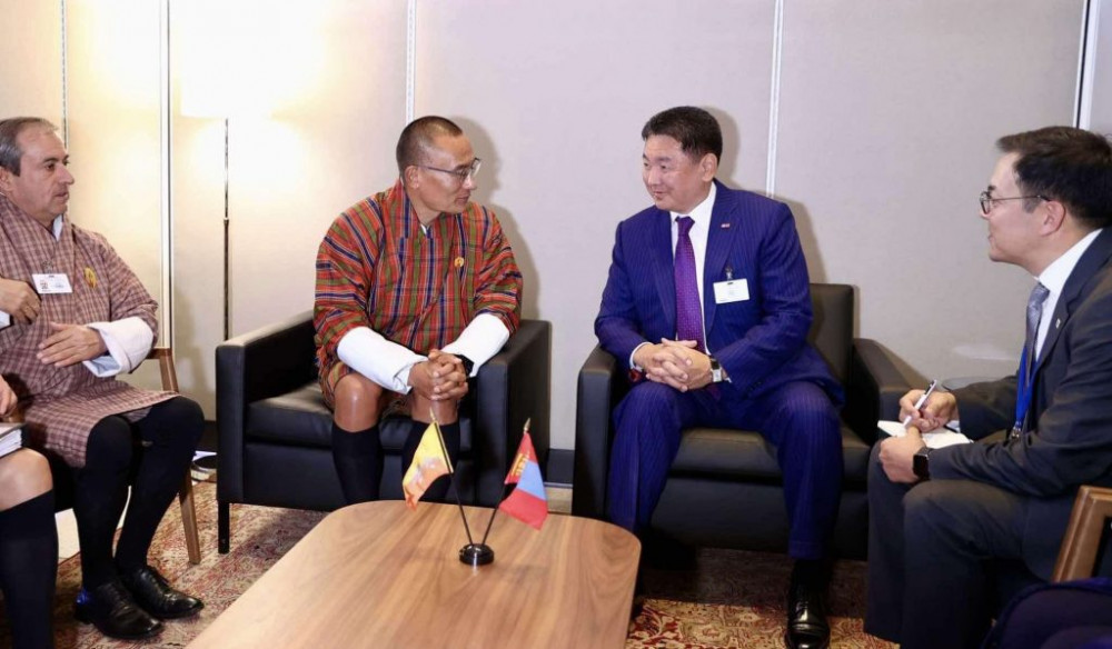 АНУ-ын Нью-Йорк хотноо болж буй НҮБ-ын Ерөнхий Ассамблейн 79 дүгээр чуулганд оролцож буй Монгол Улсын Ерөнхийлөгч Ухнаагийн Хүрэлсүх 2024 оны 09 дүгээр сарын 22-ны өдөр Бутаны Хаант Улсын Ерөнхий сайд Цэрэн Тобгайг хүлээн авч уулзав.