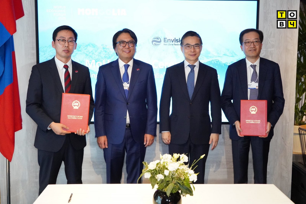 Эрчим хүчний үндэсний хороо дэлхийд ногоон технологиор тэргүүлэгч “Envision” групптэй хамтын ажиллагааны санамж бичиг байгууллаа. Санамж бичигт “Алсын хараа-2050” урт хугацааны хөгжлийн бодлого болон Шинэ сэргэлтийн бодлогыг хэрэгжүүлэх хүрээнд 500 мегаваттын эрчим хүчний батарей хуримтлуурын станц байгуулах, сэргээгдэх эрчим хүч экспортлох, ногоон ажлын байр бий болгох зэрэгт хамтран ажиллахаар тусгалаа.