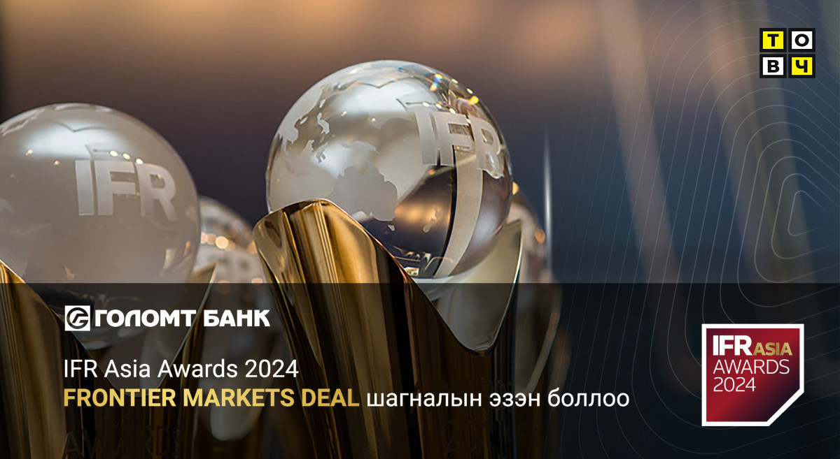Голомт банкны олон улсын зах зээлд гаргасан 300 сая ам.долларын бонд IFR Asia Awards 2024-ын оны шилдгүүдийн нэгээр тодорч, “Frontier Markets Deal”-ээр өргөмжлөгдлөө.