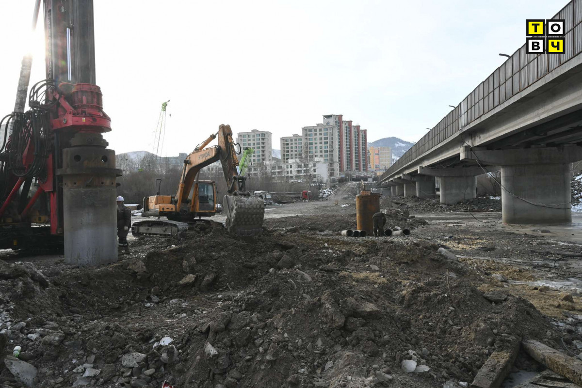Зайсангийн зүүн гүүр буюу хуучин гүүрийг нэгдүгээр сарын 10-наас хааж, буулгах ажлыг эхлүүлсэн. Тэгвэл өнөөдөр хуучин гүүрийг буулгаж дууслаа. Шинэ гүүр барих өрөмдлөгийн ажлыг эхлүүлээд байна. Уг шинэ гүүрийг зургаадугаар сард ашиглалтад оруулах юм. Гүүрийн ажлын явцтай нийслэлийн Замын хөгжлийн газрын гүүрийн хяналтын мэргэжилтэн Б.Жаргалдүүрэн байршил дээр нь очиж, танилцлаа. Уг байршил дээр шинэ гүүрний шон, суурь цутгах, арматур бэлтгэх, дам нурууг зөөх зэрэг ажил хийгдэж байлаа. Дам нурууг бэлтгэж, зөөвөрлөх ажил дөрөвдүгээр сард бүрэн дуусах бөгөөд өнөөдрийн байдлаар 50 дам нуруунаас 26 дам нурууг зөөвөрлөн авчирсан. Өдөрт хоёр дам нурууг буулгаж, ажлын явц 50 гаруй хувьтай үргэлжилж байгааг гүйцэтгэгч “ЗМЗ” ХХК-ийн гүүрийн инженер Ш.Тэмүүлэн хэллээ. Шал суурийн арматурыг өвлөөс эхлэн бэлтгэсэн учраас бэлтгэх ажлын явц 100 хувьтай дууссан.