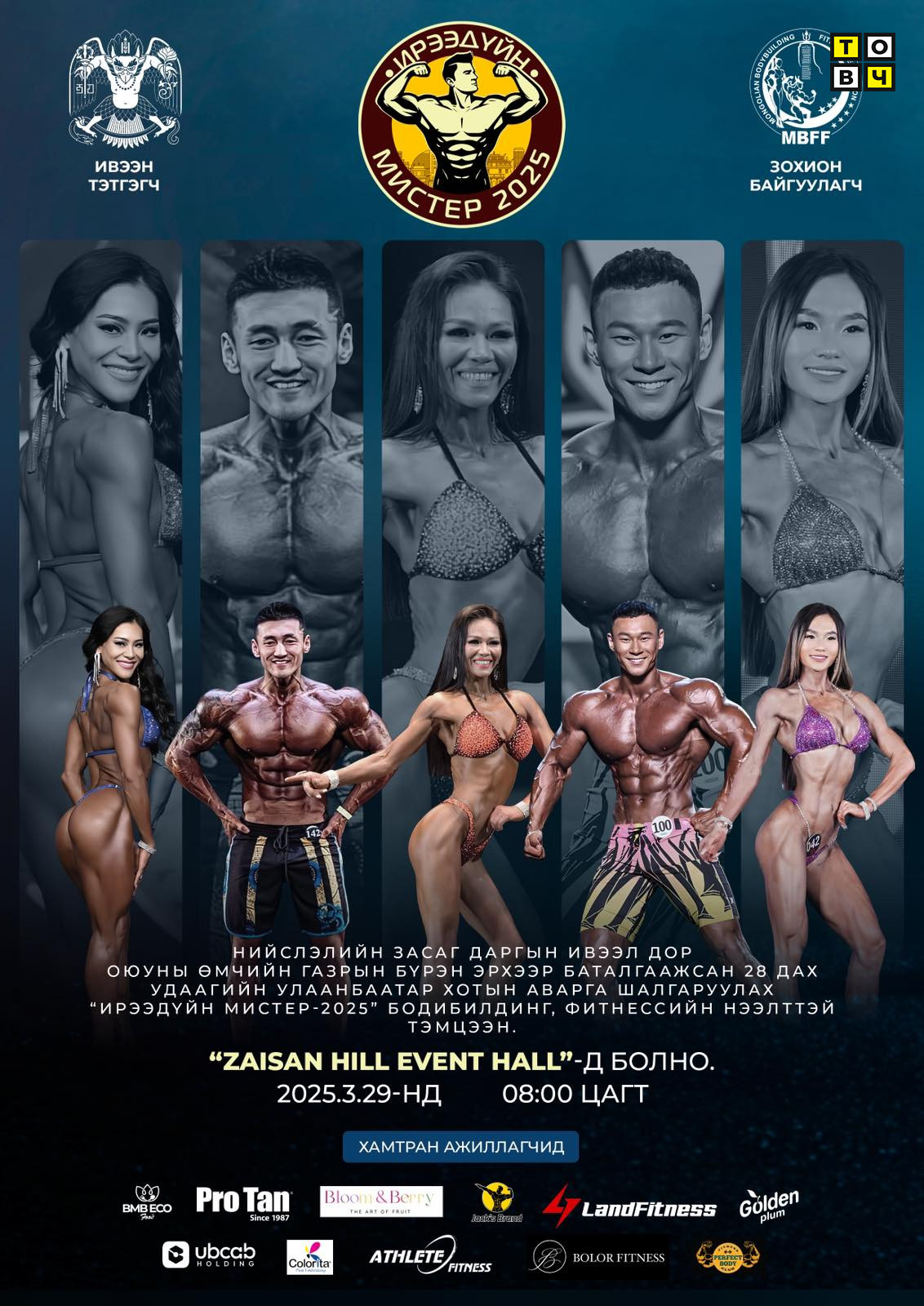 Монголын Бодибилдинг фитнессийн холбооноос оюуны өмчийн газраар баталгаажсан 28 дахь удаагийн "Ирээдүйн мистер-2025" Улаанбаатар хотын аварга шалгаруулах тэмцээнийг энэ сарын 29-ний өдөр Zaisan hill event hall-д зохион байгуулна. Тэмцээн нийт 15 төрлөөр 30 ангилалтай болно. Давхардсан тоогоор 400 гаруй тамирчин оролцох юм. Энэ жилийн тэмцээнийг нийслэлийн Засаг даргын ивээл дор зохион байгуулж байгаа онцлогтой. Нийслэлээс хүн амын эрүүл мэндийг дэмжих, нийтийн биеийн тамирыг хөгжүүлэх, залуучуудыг дэмжиж оролцож байгаа нь нийт тамирчид болон спортыг сонирхон хичээллэгч нарт том урам зориг болж буй. Улаанбаатар хотын аварга шалгаруулах тэмцээний зорилго нь Монгол Улсад бодибилдинг, фитнессийг хөгжүүлж, Засгийн газар болон биеийн тамир спортын хороодтой хамтран ажиллаж, эв нэгдлийг эрхэмлэн тамирчдыг олон улс, тив дэлхий, цаашид олимпын наадамд амжилттай оролцуулж, эх орныхоо нэрийг өндөрт өргөх, эх орноо дэлхий дахинд сурталчлан таниулах, ирээдүй хойч үеийг төлөвшүүлэн хүмүүжүүлэхэд оршино.