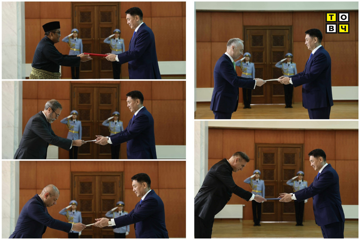 Гадаадын орнуудаас Монгол Улсад хавсран суух Элчин сайд нар Ерөнхийлөгч Ухнаагийн Хүрэлсүхэд Итгэмжлэх жуух бичгээ өргөн барилаа.