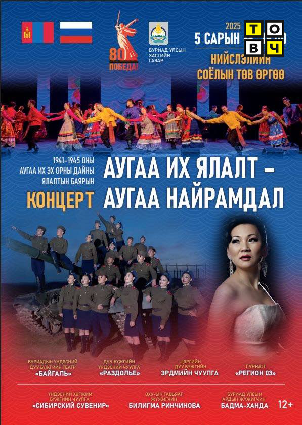 Эх орны дайны ялалтын 80 жилийн ойд зориулан “Агуу ялалт - Агуу нөхөрлөл” тоглолтыг Соёлын төв өргөөнд тавдугаар сарын 4-ны өдөр Бүгд Найрамдах Буриад Улсын уран бүтээлчидтэй хамтран зохион байгуулна.