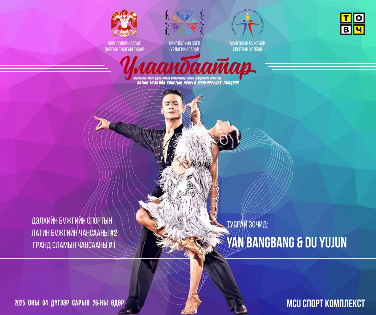 Нийслэлийн Засаг дарга бөгөөд Улаанбаатар хотын Захирагчийн ивээл дор “Улаанбаатар хотын бүжгийн спортын аварга шалгаруулах XXI тэмцээн"-ийг “MCU спорт комплекс”-д энэ бямба гарагт буюу дөрөвдүгээр сарын 26-нд зохион байгуулахаар боллоо.