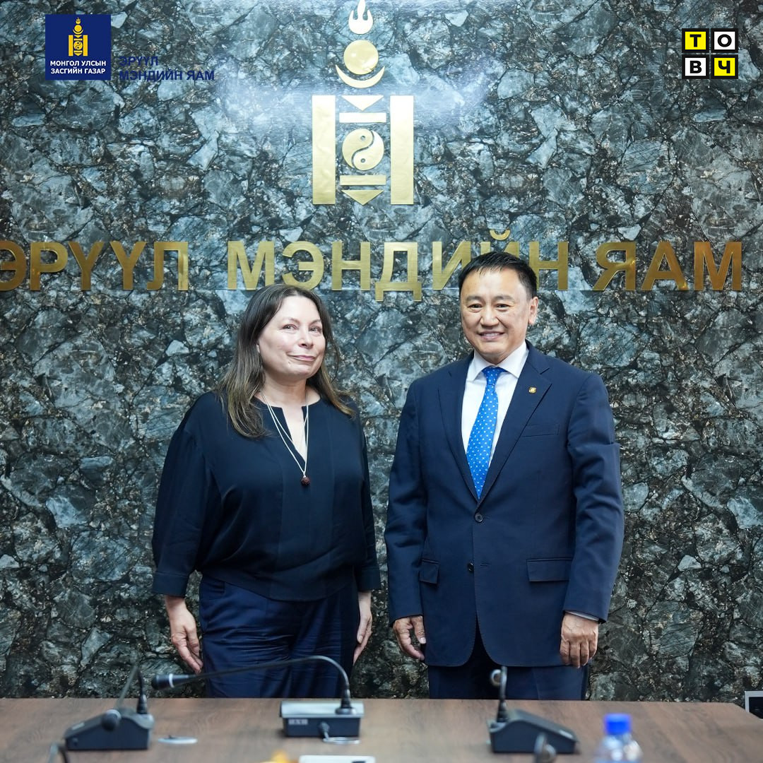 Эрүүл мэндийн сайд Ж.Чинбүрэн өнөөдөр Бүгд Найрамдах Итали Улсаас Монгол Улсад суугаа Онц бөгөөд бүрэн эрхт Элчин сайд хатагтай Жованна Пиккарретаг хүлээн авч уулзав.