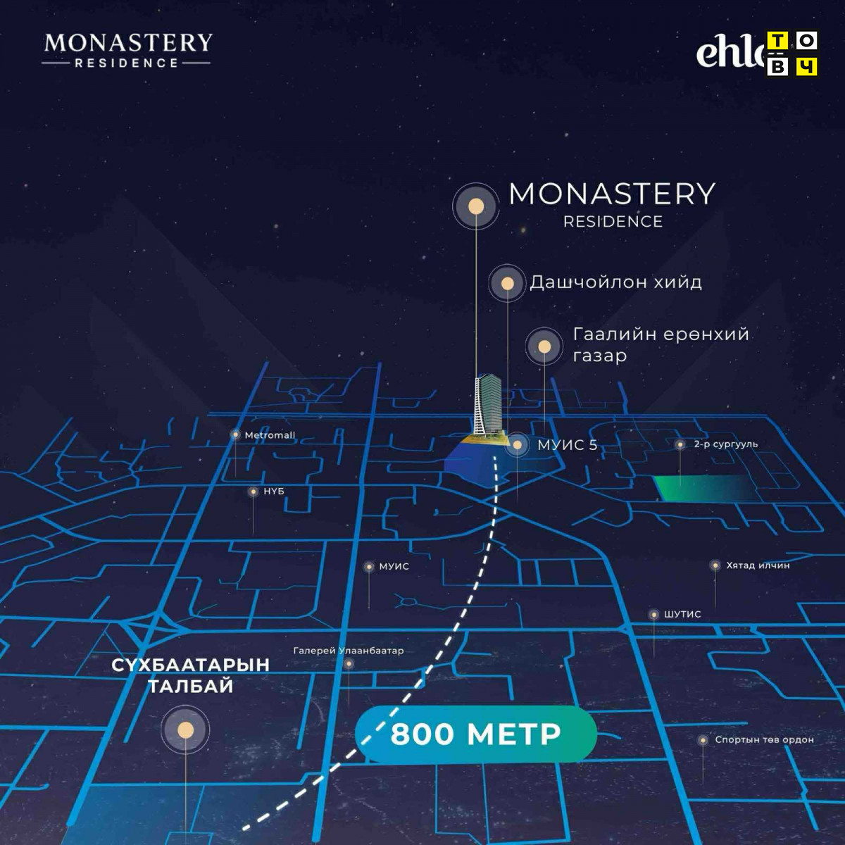 Нийслэлийн дуудлага худалдаагаар 9.3 тэрбум төгрөгөөр зарагдсан хуучин эмийн үйлдвэрийн газарт Эхлэл Групп 25 давхар “Monastery Tower” нэртэй бизнес зэрэглэлийн орон сууцны төсөл хэрэгжүүлнэ гэв.