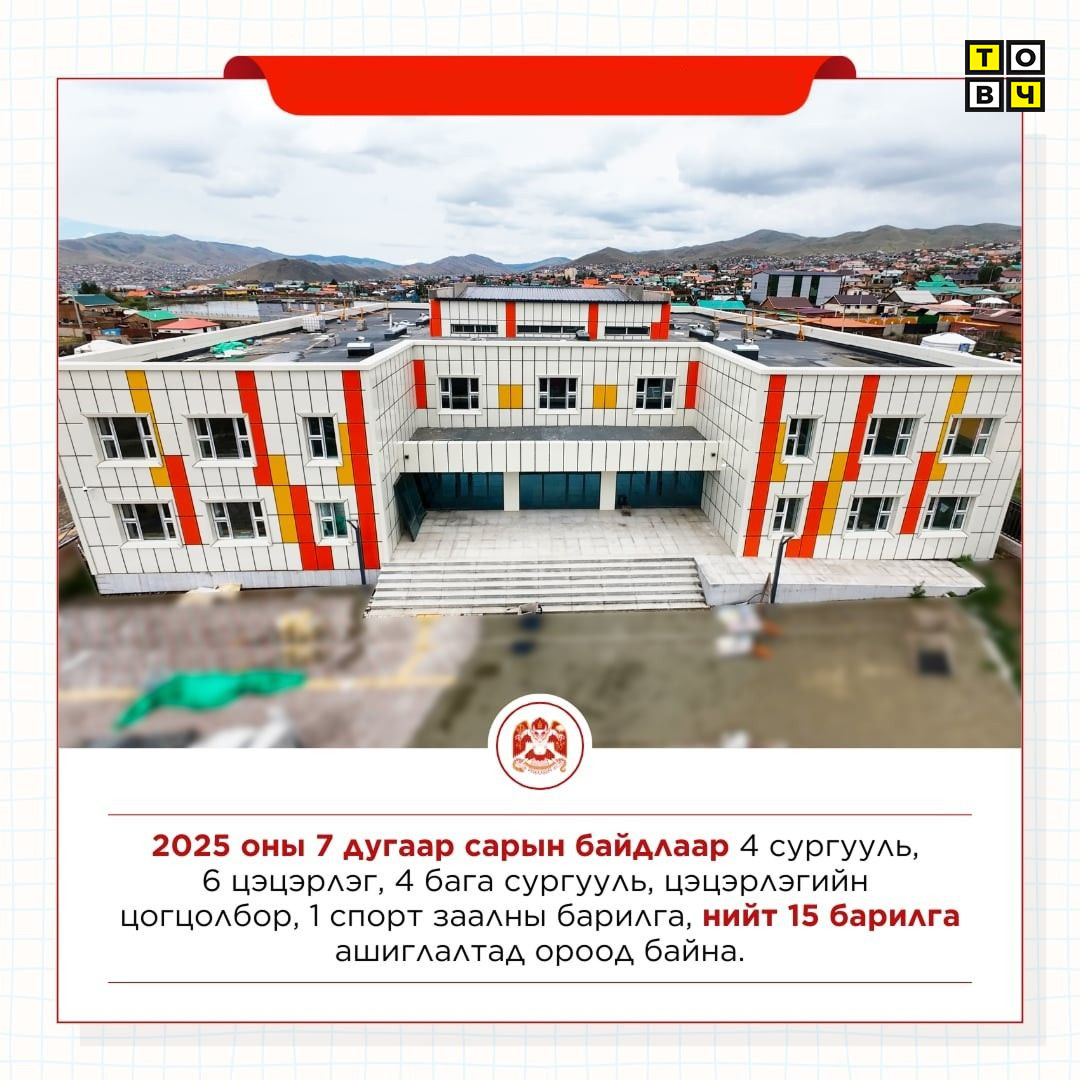 Энэ онд нийслэлийн боловсролын салбарт барилга байгууламжийн 139 төсөл, арга хэмжээ хэрэгжиж байна. 2025-2026 оны хичээлийн шинэ жилтэй холбогдуулан урьдчилсан байдлаар нийт 14 мянган хүүхдийн суудалтай 20 гаруй сургууль, 7500 ортой 40 гаруй цэцэрлэг, 3640 хүүхдийн багтаамжтай 10 гаруй бага сургууль, цэцэрлэгийн цогцолборыг барихаар төлөвлөсөн. Өнгөрсөн долоодугаар сарын байдлаар 4 сургууль, 6 цэцэрлэг, 4 бага сургууль, цэцэрлэгийн цогцолбор, 1 спорт заал, нийт 15 барилга, байгууламжийг ашиглалтад хүлээлгэн өгсөн. Үлдсэн сургууль, цэцэрлэгийн цогцолбор барилгуудыг барих болон улсын комисст хүлээлгэн өгөх, мэдээлэл нэгтгэх ажил үргэлжилж байна. Энэ жил сургууль, цэцэрлэгийг барихдаа газар чөлөөлөлт хийсэн байршлууд цөөнгүй байгааг мөн холбогдох албаныхан онцлов.