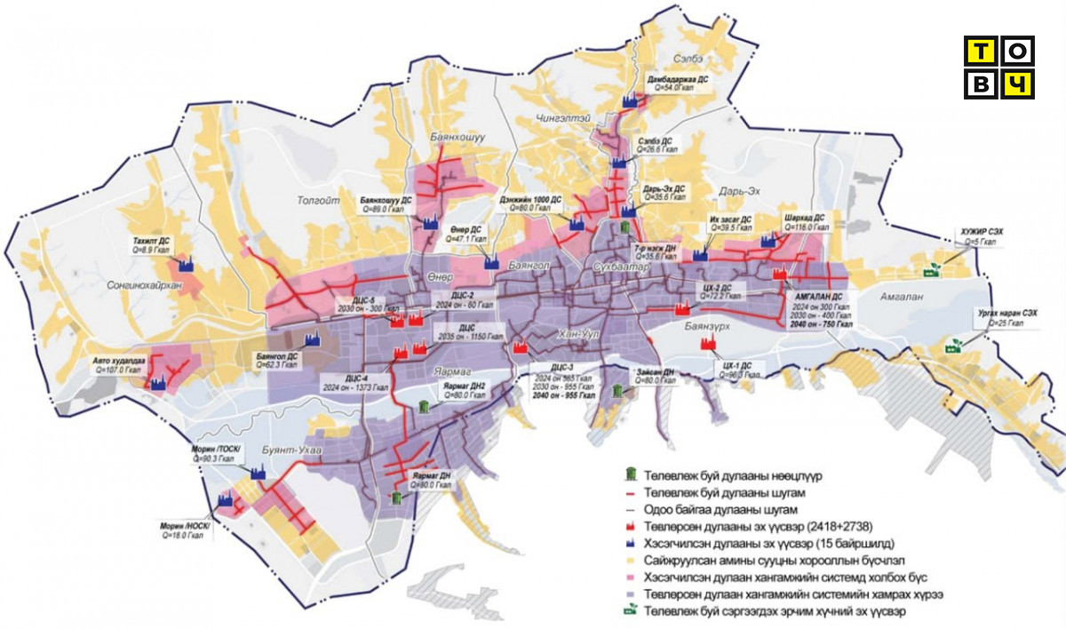 Улаанбаатар хотыг хөгжүүлэх 24 мега төслийн хүрээнд Дулааны тархмал эх үүсвэр төслийг хэрэгжүүлж байна. Уг төслөөр хийн түлшээр ажиллах эх үүсвэрийн дулааны станцыг Их Засаг, Дүнжингарав, Цэцэрлэгт хүрээлэн, Дэнжийн мянгад барина. Хатуу түлшээр ажиллах дулааны станцыг Шархад, Яармаг, Залуус, Морингийн даваа, Хүннү хот, Сэлбэ хотод барихаар төлөвлөсөн. Тус бүр 21 МВт-144 МВт хүртэлх хүчин чадалтай 10 дулааны станцыг тархмал хэлбэрээр барих бөгөөд оргил цагийн үед системээс ирэх ачааллыг бууруулан, 581 Гкал/цаг дулааны эрчим хүч нийлүүлж хэрэглэгчдийг тасралтгүй, найдвартай эх үүсвэрээр хангахыг зорьж буй.