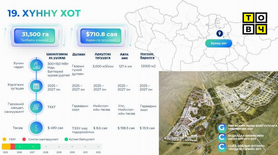 Тус хотод 150 мянган хүн оршин суух бөгөөд 80 мянган ажлын байр бий болно гэж тооцоолж буй. Мөн их, дээд сургууль, оюутны хотхон, төр захиргаа болон тээвэр логистикийн нэгдсэн цогцолбор байгуулж, эдийн засгийн чөлөөт бүс байхаар төлөвлөж байна.