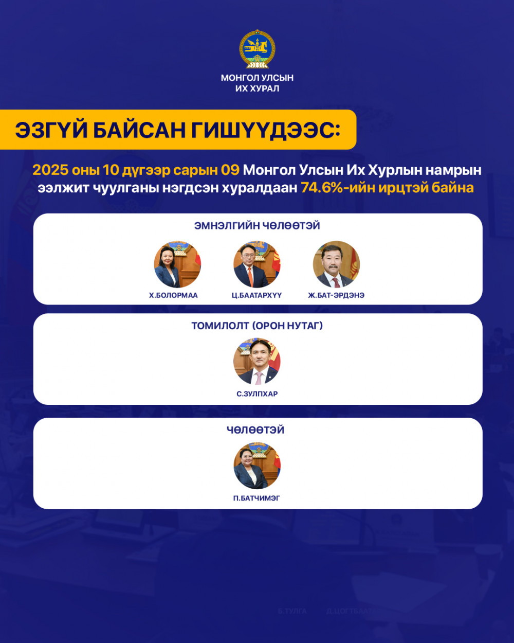 Х.Болормаа, Ц.Баатархүү, Ж.Бат-Эрдэнэ нар мнэлгийн чөлөөтэй