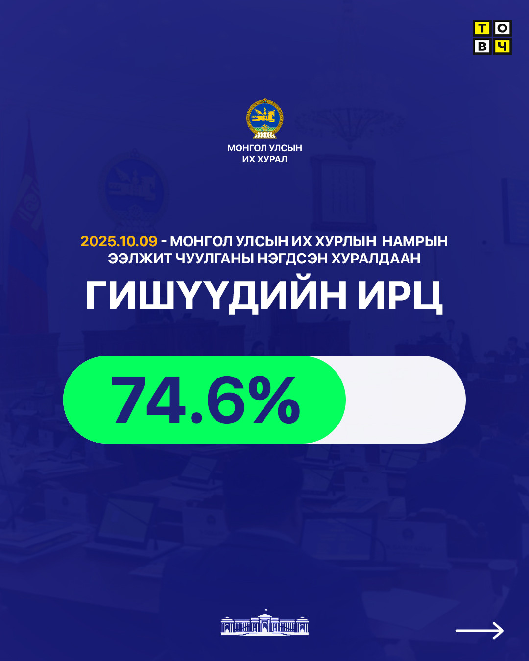 УИХ-ын намрын ээлжит чуулганы нэгдсэн хуралдаан 74,6 хувийн ирцтэй байна.