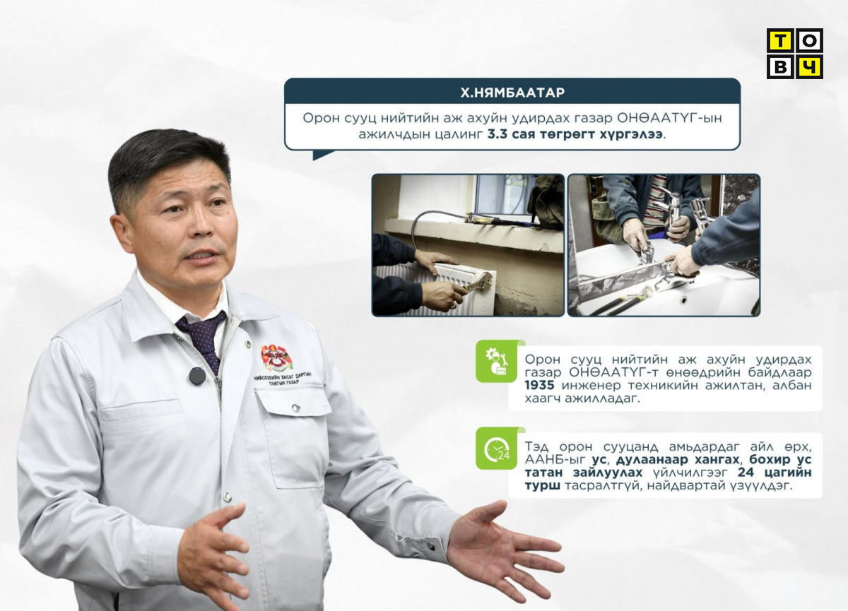 Орон сууц нийтийн аж ахуйн удирдах газар ОНӨААТҮГ-ын инженер, техникийн ажилтнууд 2019 онд 110 мянган өрхөд үйлчилдэг байсан бол 2025 онд 145 мянган өрхийн 436 мянга 785 оршин суугч, 11.688 аж ахуйн нэгжид 24 цагийн турш тасралтгүй, найдвартай үйлчилгээг үзүүлж байна. Ийнхүү таван жилд үйлчилгээ үзүүлдэг өрхийн тоо 35 мянгаар нэмэгдсэн хэдий ч инженер, техникийн ажилчдын тоо нэмэгдээгүй.