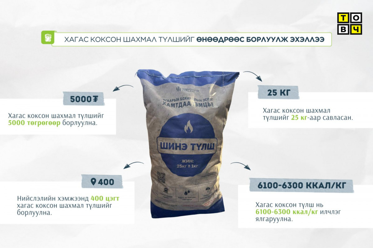 Хагас коксон шахмал түлшийг 25 кг-аар савласан бөгөөд нэг шуудайг 5000 төгрөгөөр борлуулж байна. Хэрэглэгчдийн зүгээс “Хотула” апп болон “Сайн” карт, Иргэний үнэмлэхийн QR кодыг уншуулан түлшээ авах боломжтой.