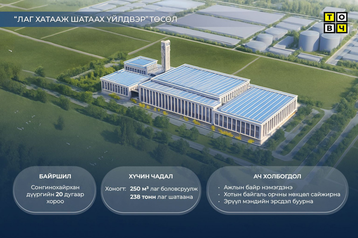Манай улсад лаг шатаах үйлдвэр байхгүй. Тиймээс Төв цэвэрлэх байгууламжаас гарч байгаа лагийг боловсруулж, хатааж, шатаах технологиор устгаж, эрчим хүч үйлдвэрлэх төслийг хэрэгжүүлэхээр Улаанбаатар хотыг хөгжүүлэх 24 мега төсөлд тусгасан. Үйлдвэрийн барилга угсралтын ажлыг 2026 онд эхлүүлнэ. Өнөөдрийн байдлаар төслийн ТЭЗҮ-ийг боловсруулж, Барилгын хөгжлийн төвөөр магадлуулсан. Барилга угсралтын тендерийг зарлахаар бэлтгэл хангаж байгаа юм. Уг үйлдвэрийг төр, хувийн хэвшлийн түншлэлээр Сонгинохайрхан дүүргийн 20 дугаар хороонд буюу Улаанбаатар хотын бохир ус цэвэрлэх байгууламжийн урд талын 40 мянган ам.метр талбайд барина. Үйлдвэр олон улсын стандартад нийцсэн, байгаль орчинд ээлтэй технологийг ашиглан хоногт дунджаар 250 метр.куб лаг боловсруулж, 238 тонн лаг шатаах хүчин чадалтай. Харин жилд 843.200 метр.куб лагийг дахин боловсруулж, шатаалтын явцад гарсан утаа, хий зэргийг өндөр технологийн агаар цэвэршүүлэх системээр шүүх юм.