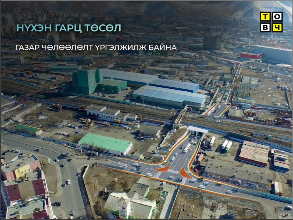 - Геологийн төв лабораторийн уулзварын нүхэн гарцын газар чөлөөлөлтөд нийт 21 нэгж талбар өртсөнөөс өнөөдрийн байдлаар 18-ыг чөлөөлж, үлдсэн гурван нэгж талбарт ААН, иргэнтэй зөвшилцөж байна. Тус байршлын нүхэн гарцын их биеийн төмөр бетон хийцлэлийн ажил дуусаж, инженерийн шугам сүлжээний ажлыг гүйцэтгэж байгаа юм. Ирэх оны хавраас авто замын барилга угсралтын ажлыг гүйцэтгэнэ.