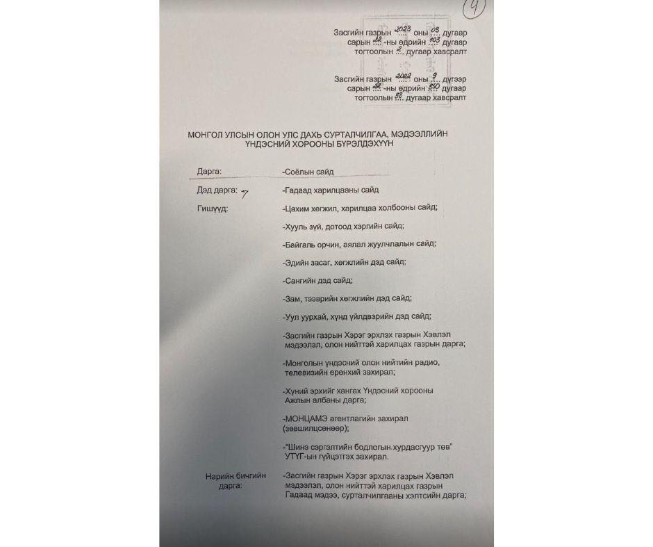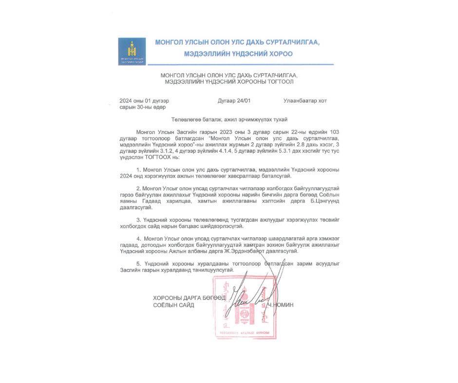 Улс төрийн зорилгоор тасалж тавьсан тогтоолыг бүрэн эхээр нь орууллаа. Монгол Улс анх удаа нэгдсэн стратеги төлөвлөгөөтэйгөөр улсаа Олон Улсад сурталчилж, мэдээ мэдээллээ дэлхий дахинд хүргэж эхэлсэн ажлыг бүхлээр нь үгүйсгэж, харлуулж байгаад харамсаж байна. Төрийн өндөр албан тушаал хашиж буй хүн улстөржүүлж болох, болохгүй асуудлаа ялгаж салгадаг байх учиртай.