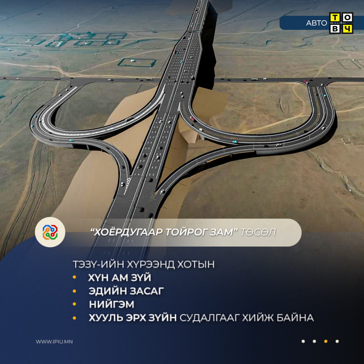 Улаанбаатар хотын авто замын түгжрэлийг бууруулах, төвлөрлийг сааруулах, хотын гол гудамж замын сүлжээг өргөжүүлэх зорилгоор “Шинэ тойрог зам” төслийг хэрэгжүүлнэ. Энэ хүрээнд “Хоёрдугаар тойрог зам”-ыг барина. Хоёрдугаар тойрог зам нь хотын зүүн болон баруун захын хөдөлгөөнийг төв замд ачаалал үүсгэлгүйгээр Нэгдүгээр тойрог зам, Туулын хурдны замтай холбох бөгөөд төслийн ТЭЗҮ-г боловсруулж байна. ТЭЗҮ-ийнхүрээнд Улаанбаатар хотын хүн ам зүй болон эдийн засаг, нийгмийн одоогийн байдал ба хэтийн төлөв, хууль эрх зүйн судалгааг хийж буй.