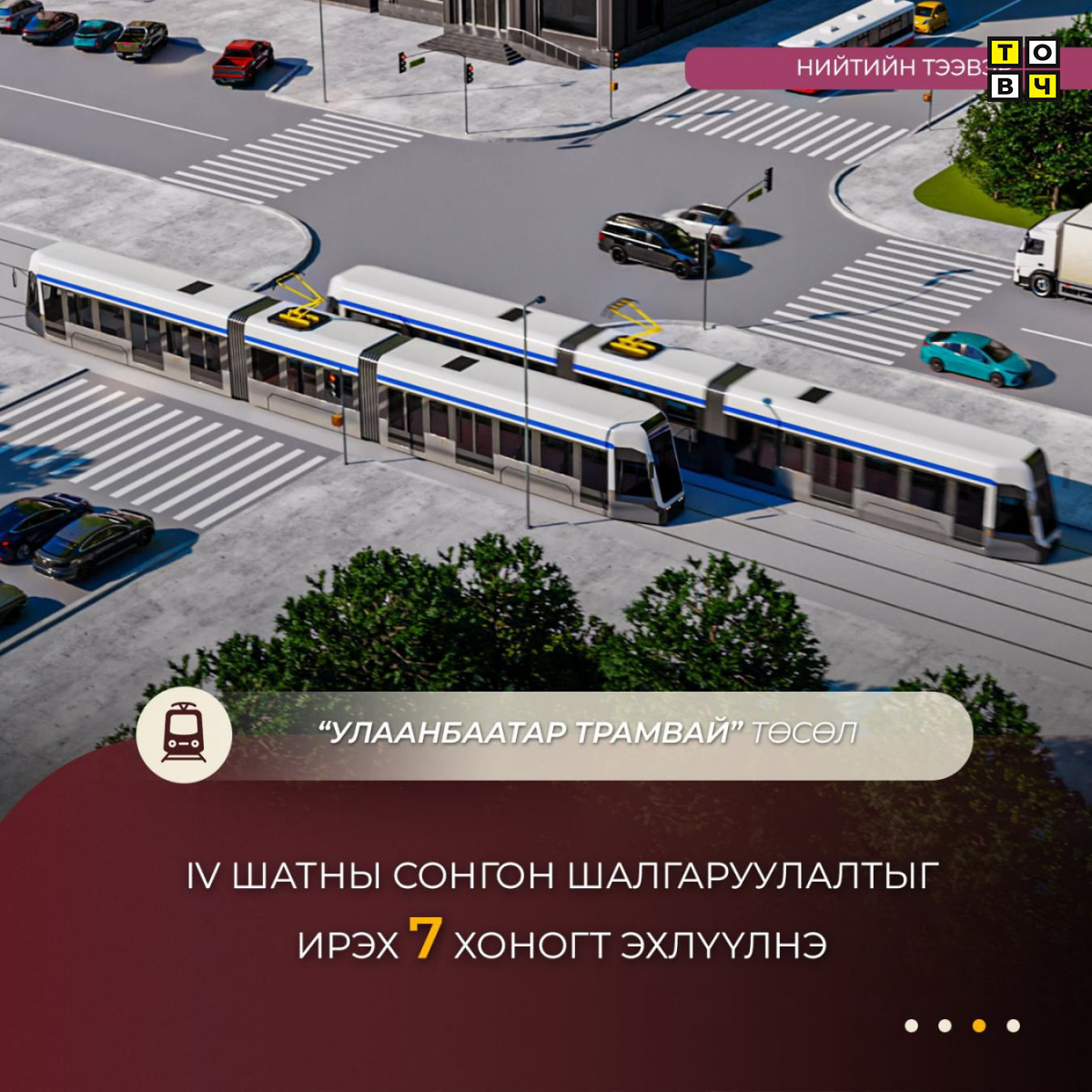 “Улаанбаатар трамвай” төсөл нь нийслэлийн босоо тэнхлэгийн дагуу ачаалал өндөртэй хоёр чиглэлийг хамарсан, нийт 26 км урт хос замтай тээврийн шинэ системээр хотын төвийн хөдөлгөөний ачааллыг бууруулж, нийтийн тээврийн чанар, хүртээмжийг сайжруулах зорилготой. Төслийн нэгдүгээр шугам Зунжин худалдааны төвөөс Сүхбаатарын талбай чиглэлд 11 км үргэлжилж, 16 зогсоолтой байх бөгөөд зорчих хугацаа 29 минут гэж тооцоолсон. Харин хоёрдугаар шугам нь Архивын ерөнхий газраас Сүхбаатарын талбай хүртэл 15 км урт, 23 зогсоолтой бөгөөд нийт 37 минутад зорчино. "Улаанбаатар трамвай" төслийг төр, хувийн хэвшлийн түншлэлээр хэрэгжүүлэх хүрээнд хувийн хэвшлийн санал авч бүрэн шинжилгээний ажлыг дуусгасан бөгөөд сонгон шалгаруулалтын дөрөвдүгээр шат ирэх долоо хоногт эхлэхээр бэлтгэл ажлыг хангаж байна.