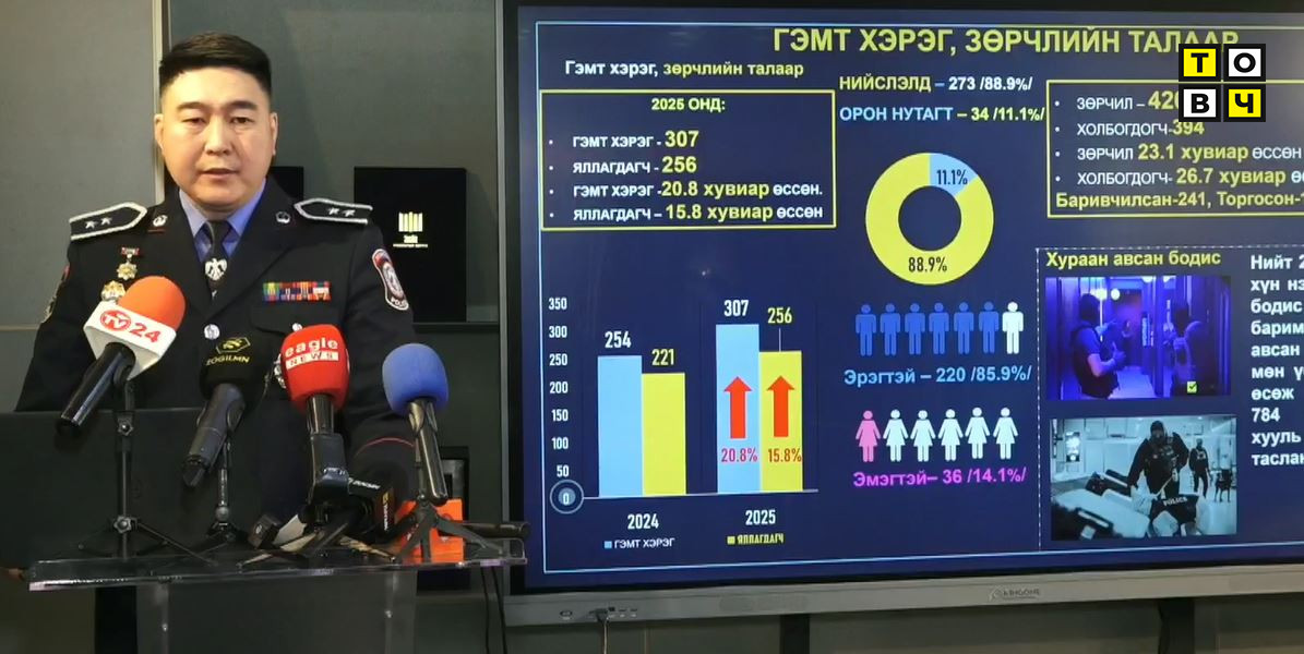 Хар тамхитай тэмцэх албаны урьдчилан сэргийлэх хамтын ажиллагааны хэлтсийн дарга Ж.Төмөрбат: НҮБ-ын хар тамхитай тэмцэх албанаас 2025 онд дэлхийд ойролцоогоор 500 мянга орчим гэмт хэрэг бүртгэгдэж, 1200 тн мансууруулах бодис хурааж авсан байна.
