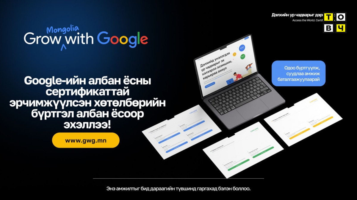 “Grow with Google” хөтөлбөр нь мэдлэгийг бодит хөрөнгө оруулалт болгон хувиргаж, Монголын хүний нөөцийг олон улсын түвшинд өрсөлдөх чадвартай болгоход чиглэсэн бодитой алхам юм. Бүртгэл хязгаартай тул сонирхсон иргэд та бүхэн амжиж бүртгүүлэхийг уриалж байна.