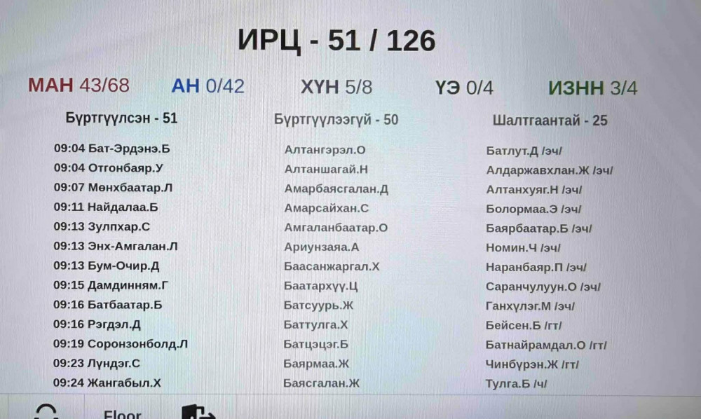 Түүнчлэн бүртгүүлээгүй буюу чуулганы хуралдаандаа ирээгүй 25 шалтгаантай гишүүн байгаа аж. Эдгээрийн дунд буюу эрүүл мэндийн чөлөөтэй гишүүд олонтаа харагдаж байгаа нь анхаарал татаж байна.