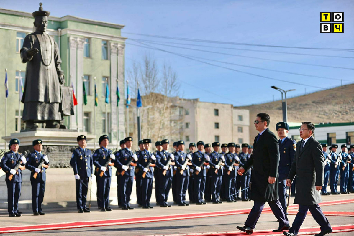 Монгол Улсын Ерөнхийлөгчийг Жалханз хутагт Ц.Дамдинбазарын нэрэмжит төв талбайд хүрэлцэн ирэхэд Улиастай цэргийн хүрээний хүндэт харуул угтаж авлаа.