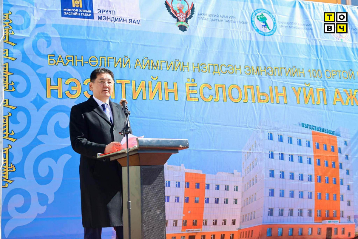 Монгол Улсын Ерөнхийлөгч Ухнаагийн Хүрэлсүх Баян-Өлгий аймагт ажиллах үеэрээ Нэгдсэн эмнэлгийн нээлтэд оролцлоо. Тэрбээр Ерөнхий сайд байхдаа эмнэлгийн нөхцөл байдалтай танилцаж, улмаар 150 ортой эмнэлэг барих шийдвэр гарган, шавыг нь тавьж, бүтээн байгуулалтыг нь эхлүүлсэн юм.