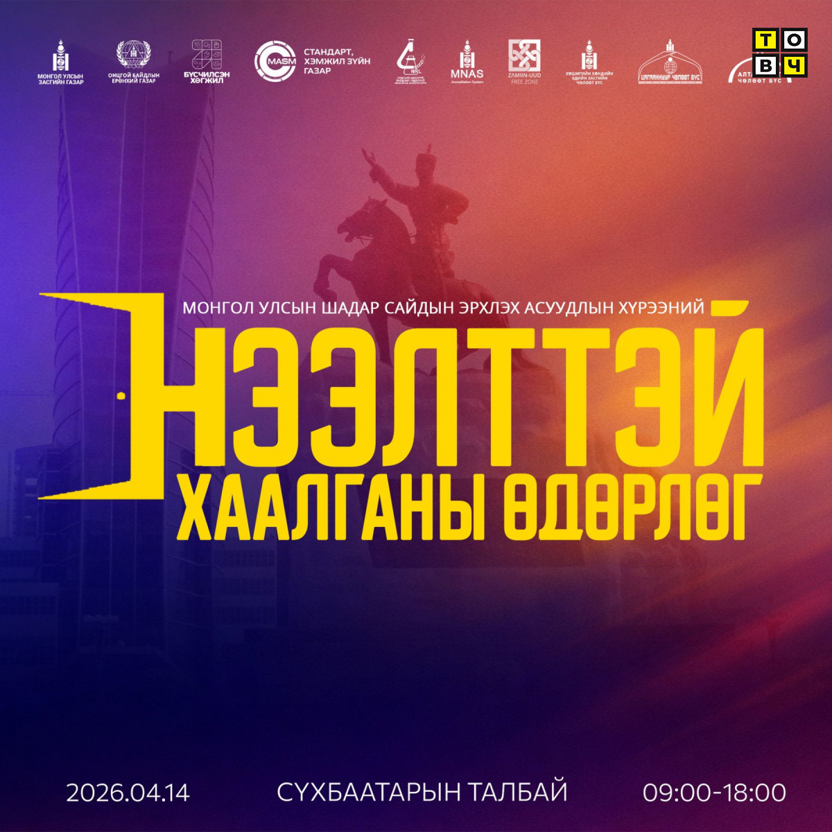 Монгол Улсын Шадар сайдын эрхлэх асуудлын хүрээний байгууллагуудын нээлттэй хаалганы өдөрлөгийг маргааш /2026.04.14/ Сүхбаатарын талбайд зохион байгуулна.
