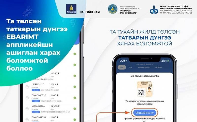 Татварын шинэчлэлийн хүрээнд татвар төлөгчдөд ээлтэй цахим тогтолцоог бүрдүүлэх, хялбаршуулсан горимоор тайлан илгээх, татвараа төлөх, хөнгөлөлт, чөлөөлөлтөд хамрагдах, татварын мэдээллээ хянах технологийн шийдлийг ebarimt апликейшнд нэвтрүүлж байна. Та төлсөн татварын дүнгээ ebarimt апликейшн ашиглан хүссэн үедээ харах боломжтой боллоо.
