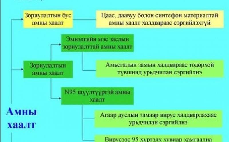 - · Нэг удаагийн амны хаалтыг 2-3 цаг тутам сольж хэрэглэн, тайлахдаа гадна талын амны бохир хэсэгт гар хүргэлгүй, чихний уяанаас барьж устгах.