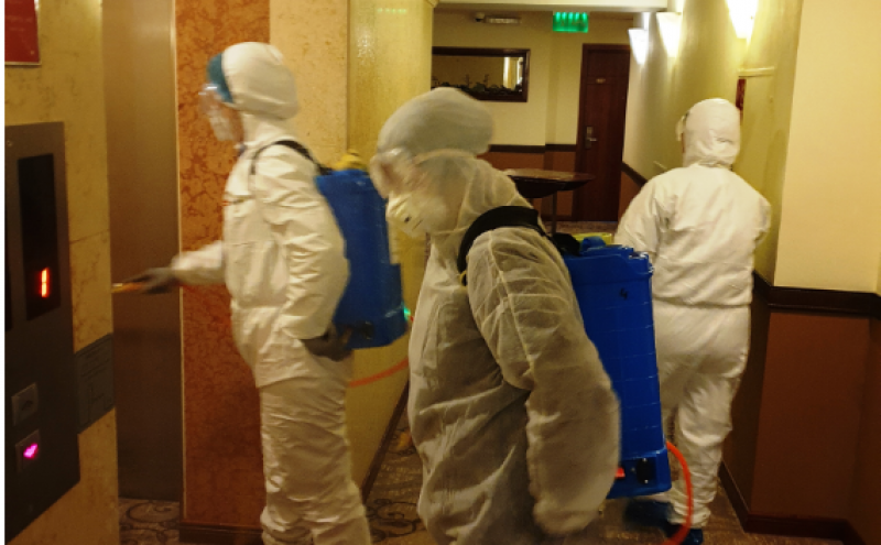 Өнөөдөр шинэ коронавирусийн халдвараас урьдчилан сэргийлэх арга хэмжээний хүрээнд ДЭМБ-ын 5 зөвлөхийн байрлаж байсан Хаан палас ХХК-ийн Кемпински зочид буудалд хонгил, лифт, зочин угтах болон хүлээлгийн хэсэг зэрэг нийт 320 метр квадрат талбайд Халдваргүйжүүлэлт ХХК-ийн эрүүл ахуйч 1 эмч, 3 ариутгагч эцсийн халдваргүйтгэлийг хийжээ.