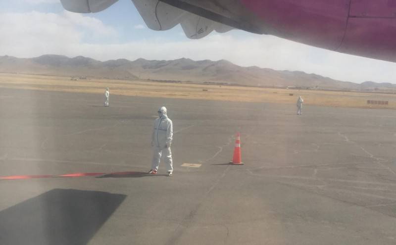 Тус агаарын хөлөгт Баян-Өлгий аймгаас 11, Ховд аймгаас 47, нийт 58 зорчигч зорчиж ирсэн байна. Халдварт өвчин судлалын үндэсний төв, Хилийн мэргэжлийн хяналтаас бүрдсэн тусгай баг зорчигчдод үзлэг хийж эхэлсэн бөгөөд Өлгий нисэх буудлаас ирсэн зорчигчдыг тусгаарлан эмнэлэгт хүргэнэ. Харин Ховд аймгаас ирсэн зорчигчдыг Буянт-Ухаа спорт цогцолборт тусгаарлан нарийн үзлэг хийх юм байна.
