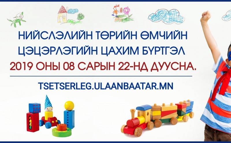 Төрийн үйлчилгээг иргэдэд нээлттэй, ил тод, түргэн шуурхай, чирэгдэлгүй үзүүлэх зорилгоор нийслэлийн төрийн өмчийн цэцэрлэгт шинээр элсэх, үргэлжлүүлэн суралцах хүүхдийн бүртгэлийн үйл ажиллагааг 2019 оны 07 дугаар сарын 22-ны өдрөөс эхлэн нэг сарын хугацаанд зохион байгуулж байгаа бөгөөд бүртгэл ирэх сарын 22-ны өдрийн 23 цаг 59 минутанд дуусах юм.