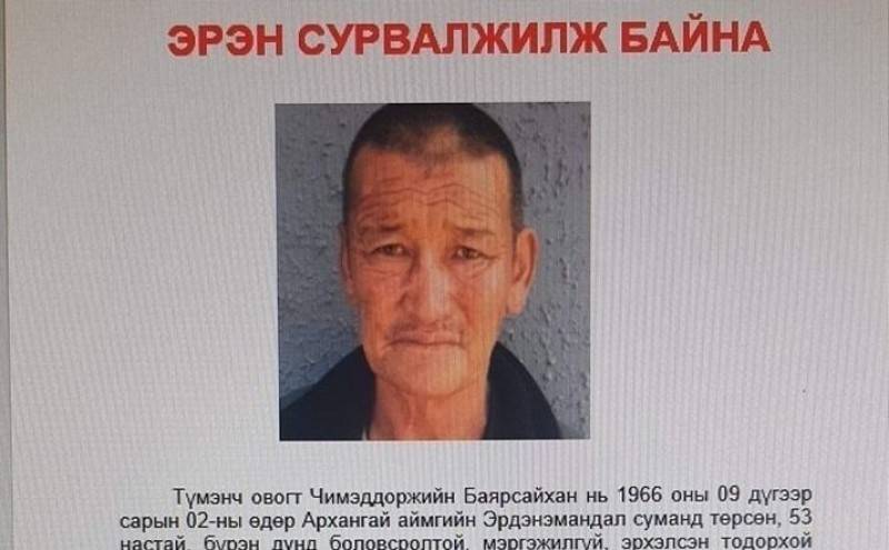 Эхнэрийнхээ аминд хүрээд хэргийн газраас оргон зайлсан Улаанбаатар хот СБД-ийн 12 дугаар хороонд оршин суух хаягтай Ч.Баярсайхан гэгч этгээдийг цагдаагийн алба хаагчид өнөөдөр /2019.09.07/ 13.30 цагийн орчимд баривчилжээ. Ч.Баярсайхан нь 1966 оны 09 дүгээр сарын 02-ны өдөр Архангай аймгийн Эрдэнэмандал суманд төрсөн, 53 настай, бүрэн дунд боловсролтой, мэргэжилгүй, эрхэлсэн тодорхой ажилгүй, Эрдэнэмандал суманд мал маллаж байгаад 2018 оноос Улаанбаатар хот СБД-ийн 12 дугаар хороонд эхнэр, хүүхдийн хамт түр оршин сууж байсан. Тэрбээр эхнэрийнхээ амь насыг хохироосон хүнд гэмт хэрэг үйлдээд оргон зайлаад байсныг цагдаагийн алба хаагчид эрэн сурвалжлан илрүүлсэн байна.
